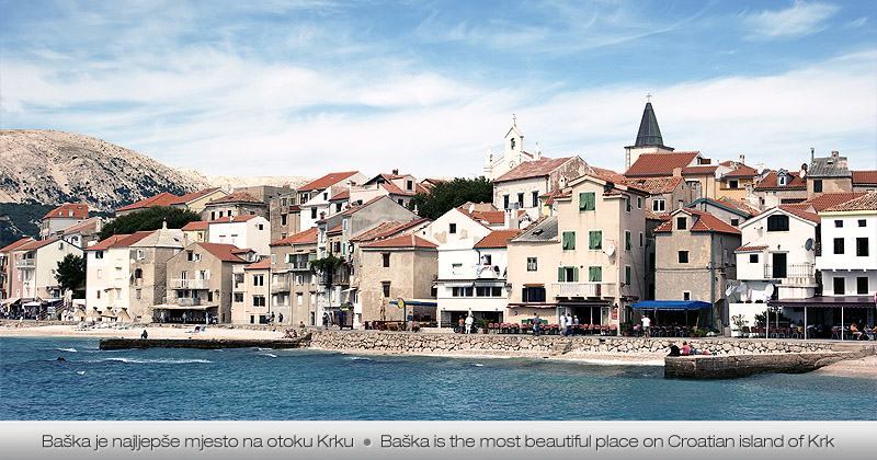 Baška [bashka] is one of the most beautiful places on the biggest Croatian island of Krk. Baska is in many ways an important place. The first official beach on the island opened in 1908 and that year is marked as the official start of tourism on the island. Today, the 1800 meters long pebble beach cannot be compared to any other beach on the northern Adriatic, and Baska alone counts as one of the most attractive destinations of the Adriatic coast.